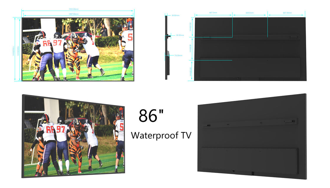 Support mural TV extérieur étanche IP55 86 pouces 2000 nits 4K